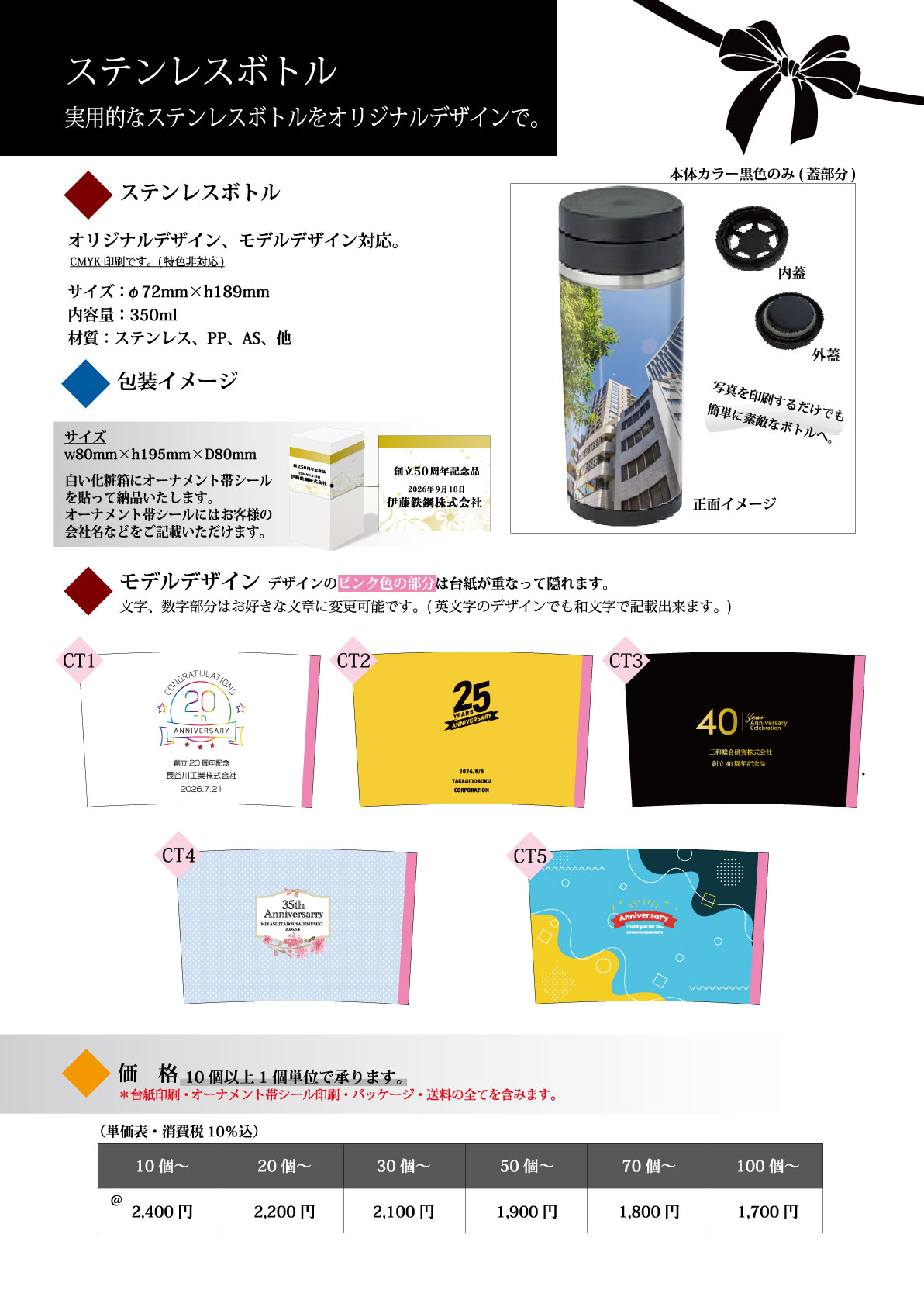周年記念品・ノベルティに名入れ企業ロゴの印刷、のし印刷無料