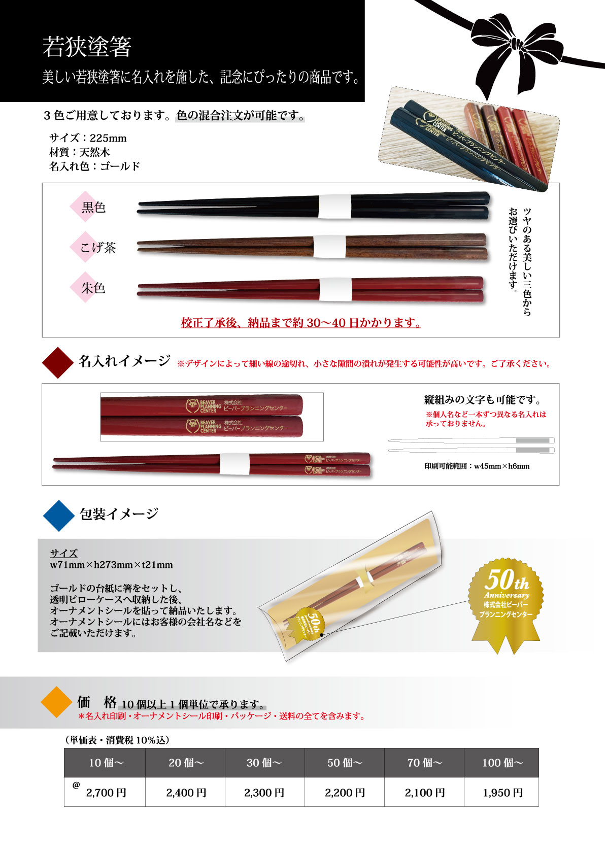 周年記念品・ノベルティに名入れ企業ロゴの印刷、のし印刷無料