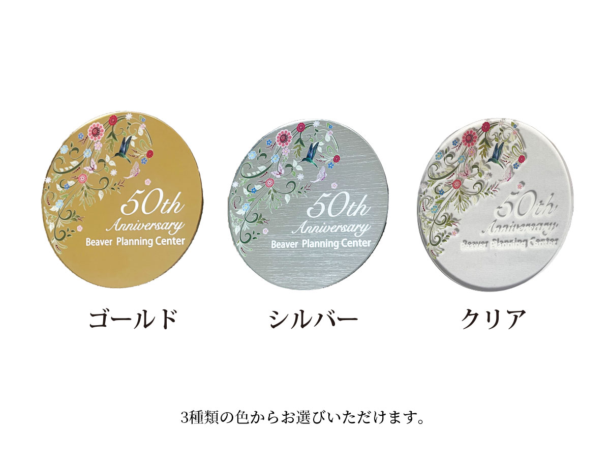 ゴールド・シルバー・クリア(透明)の3種類の色からコースターをお選びいただけます。