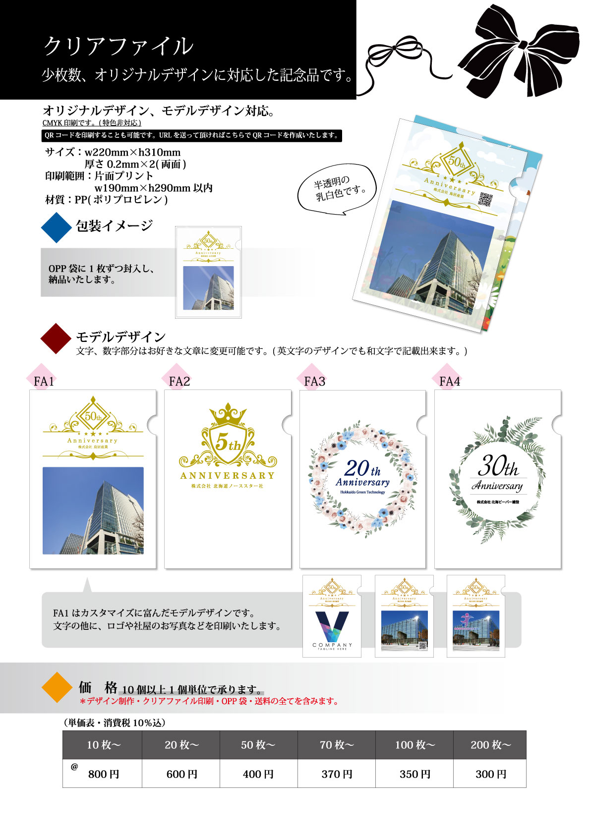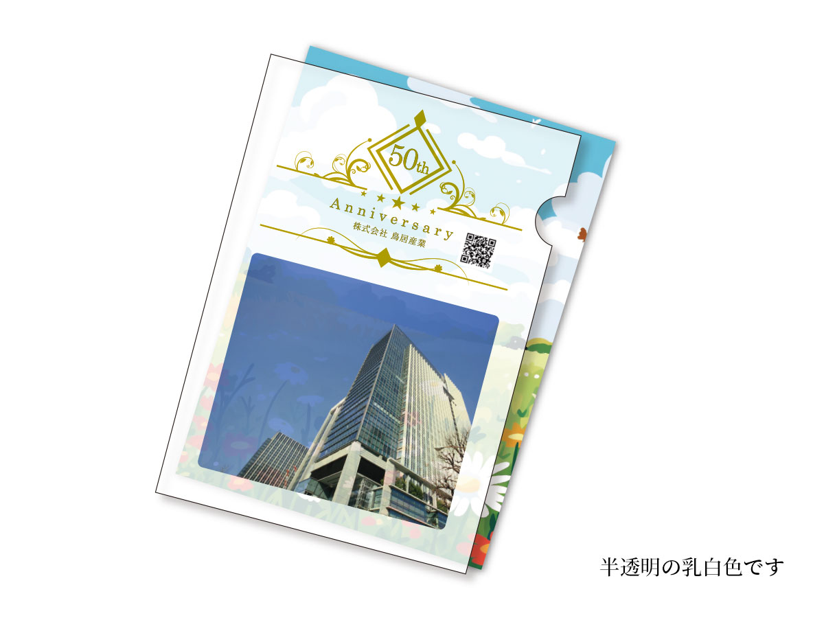少枚数からご注文いただけるオリジナルデザインに対応した記念品クリアファイルです。