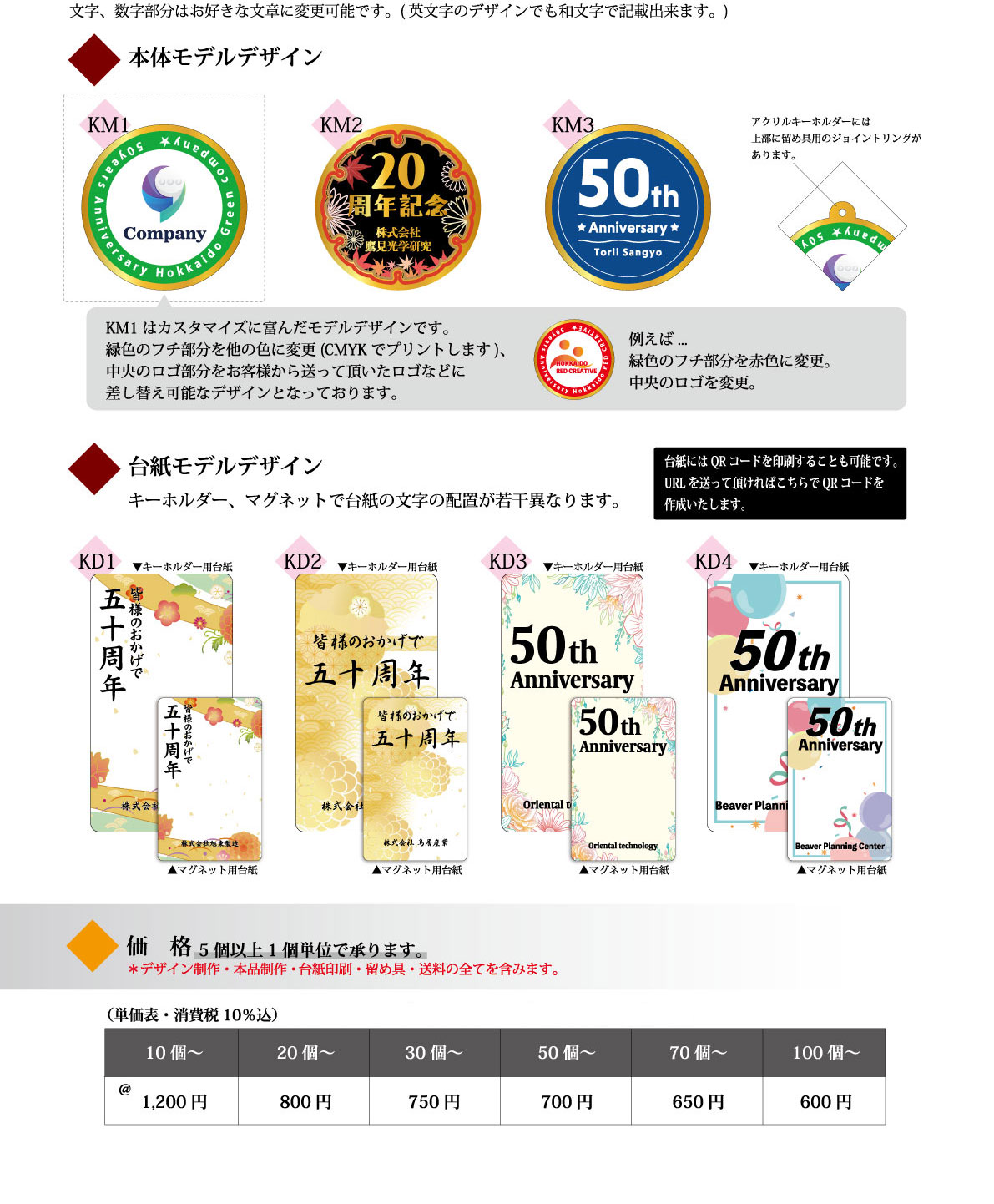 オリジナルデザインは、サイズ50mm以内で制作できます。