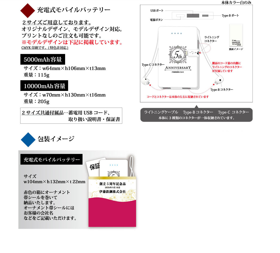 | 商品名 | 充電式モバイルバッテリー(10000mAh) |