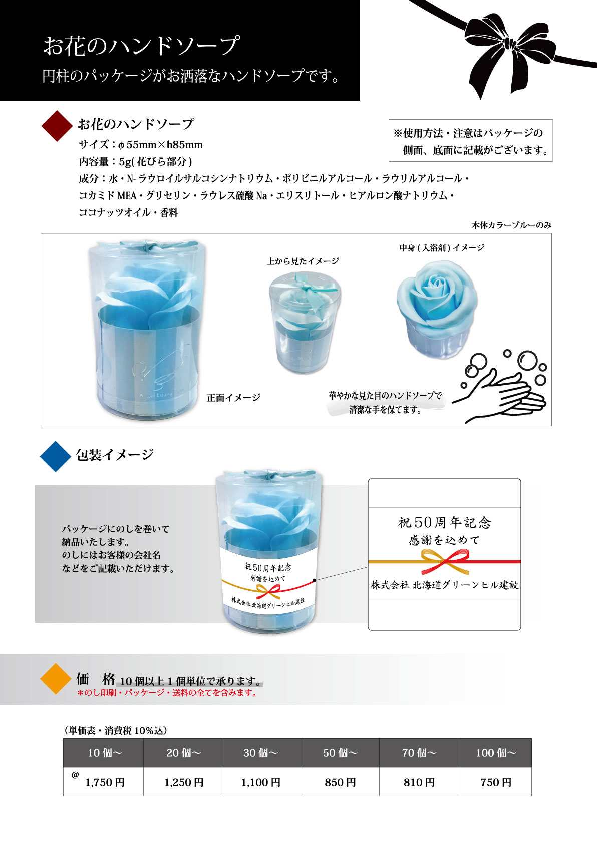 周年記念品・ノベルティに名入れ企業ロゴの印刷、のし印刷無料