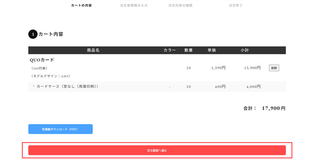 ③カートの中身を確認のうえ、注文画面へ進みます。